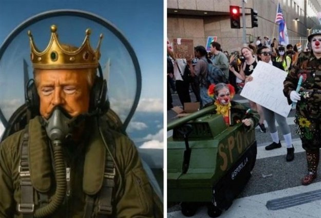 Additionally, Trump shared an AI-generated video portraying himself wearing a crown while sitting on a fighter jet labeled "King Trump," humorously depicting him pouring waste on the protesters.