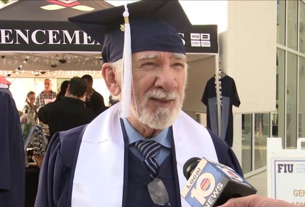 روبرتو فرناندز تنها یک درس تا فارغالتحصیلی از دانشگاه بینالمللی فلوریدا (FIU) در سال 1975 فاصله داشت، اما تحصیل را رها کرد و بر کسب و کارش متمرکز شد. حالا بعد از 50 سال او برگشت و کار نیمه تمامش را به پایان رساند. (فیلم زیر)