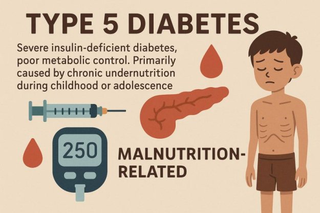 English SummaryResearchers have officially identified a new type of diabetes, targeting young and slim individuals. Announced at the 2025 World Diabetes Conference in Bangkok, Type 5 diabetes, also known as malnutrition-related diabetes, affects an estimated 20-25 million people worldwide, predominantly in Asia and Africa. It results from chronic malnutrition during childhood, leading to inadequate insulin production. Management typically involves oral medications rather than insulin injections. Symptoms align closely with Type 1 diabetes, including increased thirst and weight loss. A nutrient-rich diet is being explored to support affected individuals.